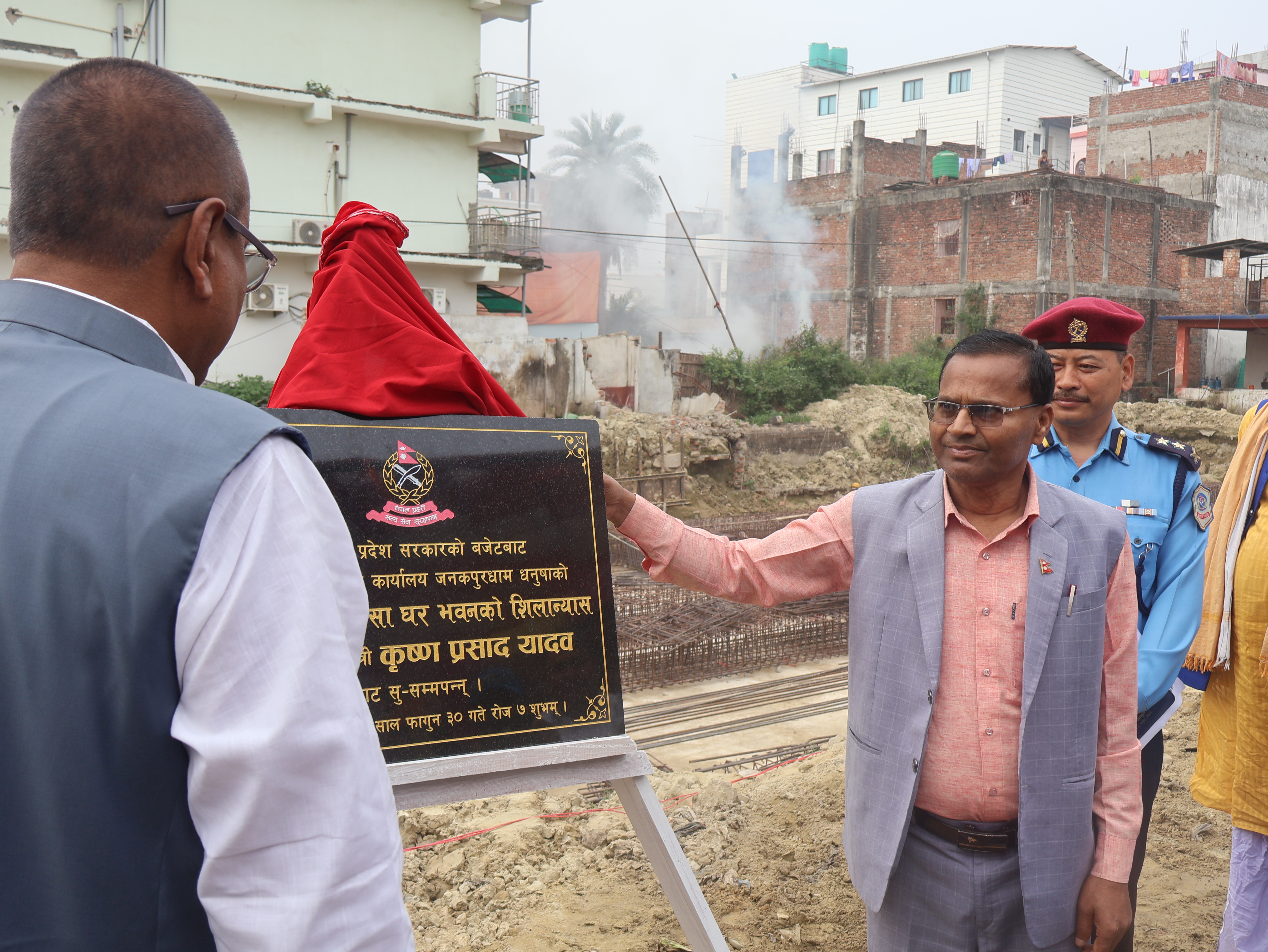 मधेश प्रदेश प्रहरी कार्यालयको ब्यारेक तथा भान्सा घर भवनको शिलान्यास कार्यक्रम । मिति 2082-11-30 गते